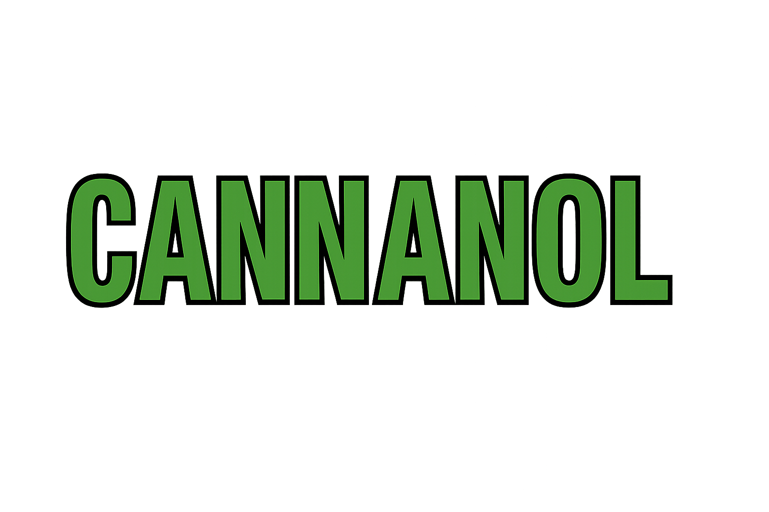 VARIED SIZES OF GREEN FUEL CONTAINERS WITH CANNANOL, A CANNED FUEL, TRADEMARKED ON THE FRONT